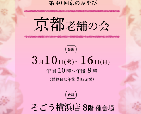 rakunyu2026-03-04 16:39:162026-03-04 16:39:16◇そごう横浜店〚第40回京のみやび 京都老舗の会〛出展のお知らせ◇