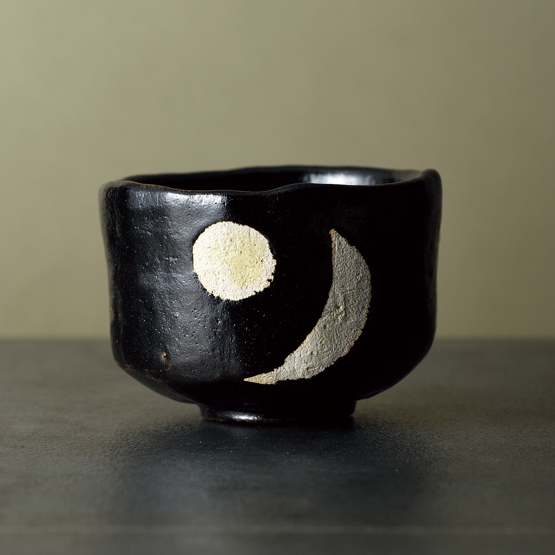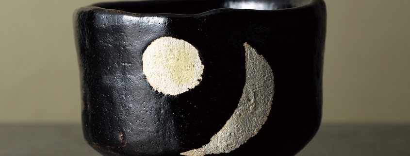 来る年迎える年を凛と照らす抹茶碗〚黒楽 日月〛。